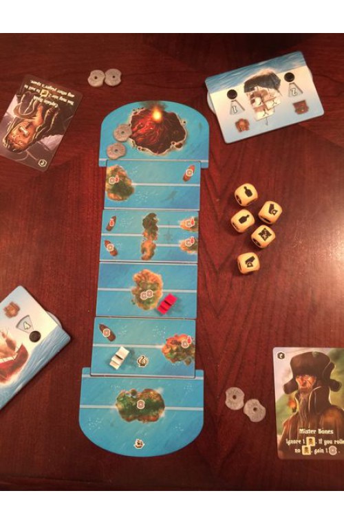 The first player to reach Skull Island will get all of the coins lost to cursed dice, but if that doesn't fill your sixth treasure chest, the race resets and you keep on sailing. And, if you no Captain gains their sixth treasure by the second time someone reaches Skull Island, the game ends and the Captain with the most Treasure and Silver wins the game!