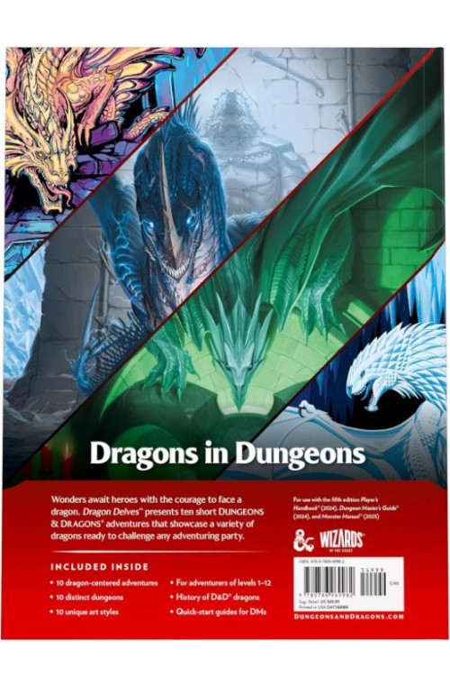 Vier 50 jaar D&D met deze exclusieve Limited Edition van Dragon Delves, een avonturenbundel met 10 epische, drakenthema’s voor personages van level 1 t/m 12. Elk avontuur speelt zich af in een unieke setting met een eigen drakenlair, en kan afzonderlijk of als campagne gespeeld worden – ideaal voor zowel korte sessies als langdurige storytelling.