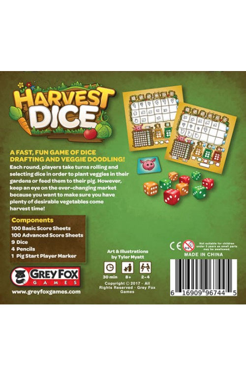 Harvest Dice is a fast, fun dice game of dice drafting and veggie doodling.