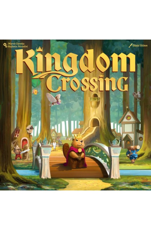 Kingdom Crossing speelt zich af in het vredige koninkrijk Clairesource, waar koningin Castorette haar tijd eerlijk wil verdelen over vier regio’s. Helaas zijn die slechts verbonden door zeven bruggen — en dat is er één te weinig. Als speler help je de koningin bij het bouwen van een achtste brug, terwijl je door het rijk reist, ambachtslieden rekruteert en grondstoffen verzamelt. Elke beurt kies je een actie-tegel en voer je die uit, wat zorgt voor een vlot spelverloop met veel strategische keuzes. Je probeert de gunst van de koningin en vijf gildes te winnen, terwijl je je bewegingen optimaliseert: je mag elke brug maar één keer per dag gebruiken. Het spel biedt een rijke eurogame-ervaring in een compacte speelduur van 60–90 minuten. Dankzij de heldere iconografie, sfeervolle illustraties en modulaire opbouw is Kingdom Crossing toegankelijk én herspeelbaar. De solo-modus met Automa en vier moeilijkheidsgraden maakt het ook geschikt voor solospelers.